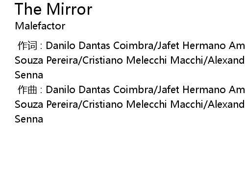 | [00:00.000] | zuo qu : Danilo Dantas Coimbra Jafet Hermano Amo do Machado Roberto Souza Pereira Cristiano Melecchi Macchi Alexandre Deminco Lemos Vladimir Mendes Senna |