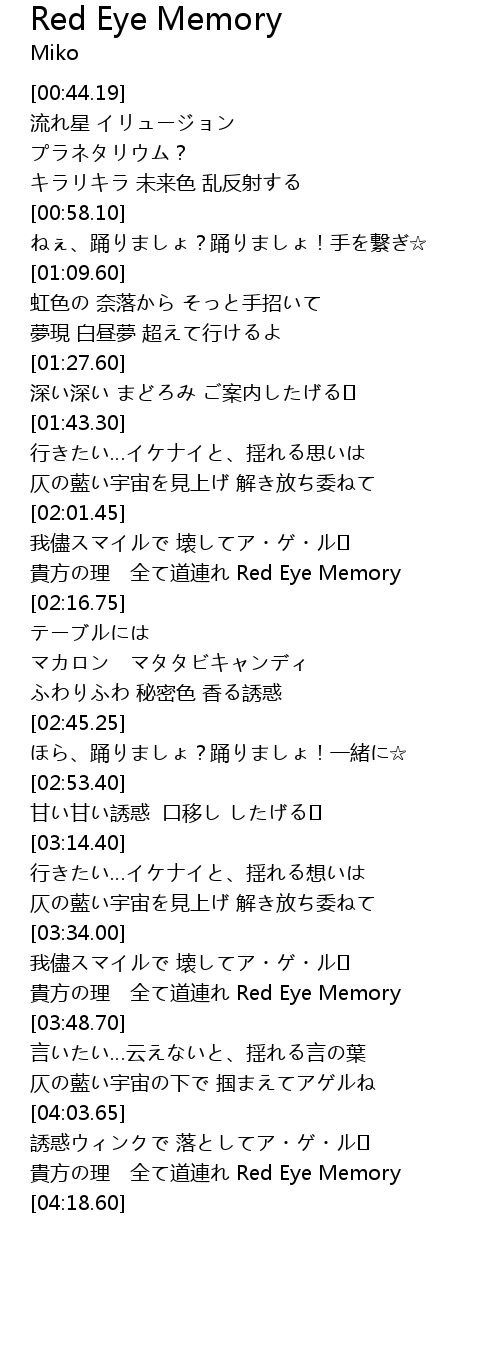 | [03:41.20] | 貴方の理 全て道連れ Red Eye Memory |