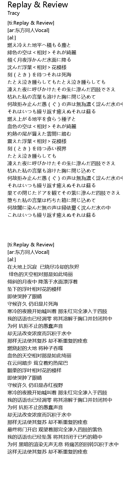 | [03:31.93] | これはいつも繰り返す癒えぬそれは蘇る |