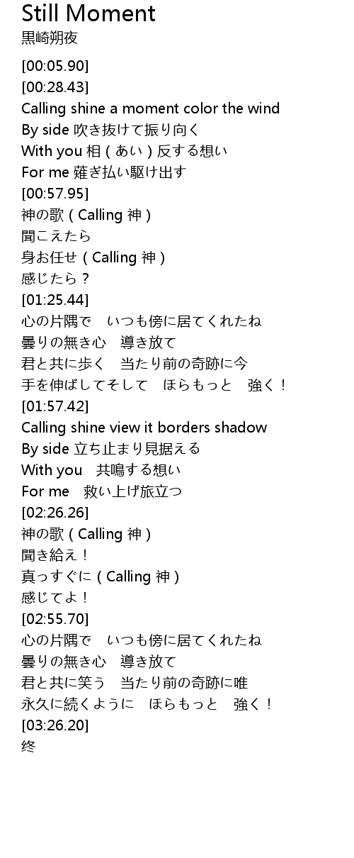 | [00:29.96] | Calling shine a moment color the wind |