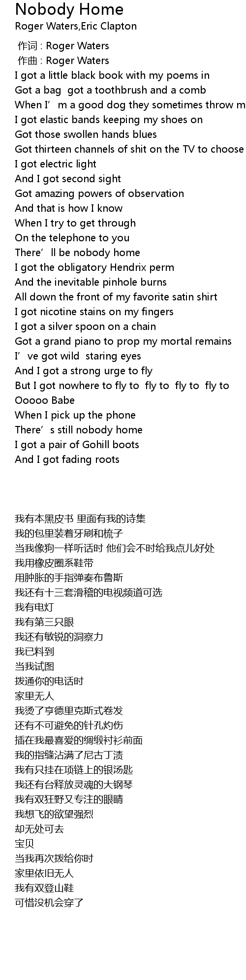 | [00:00.000] | 作词 : Roger Waters |