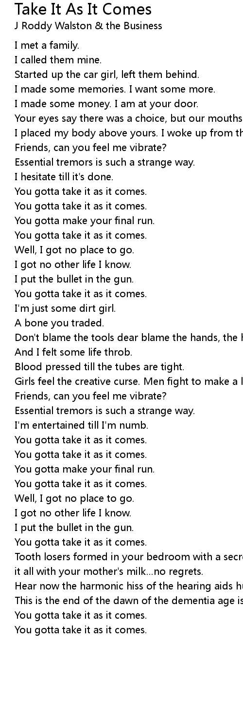 Your eyes say there was a choice, but our mouths move for destiny. |