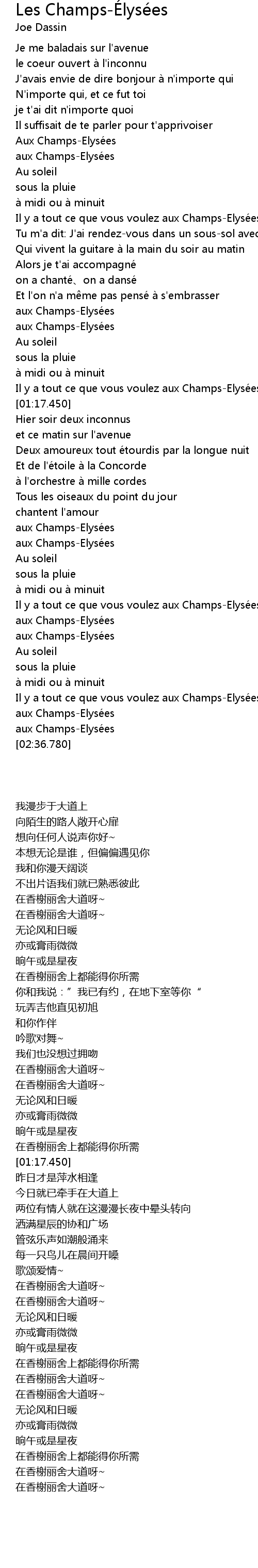 | [02:25.110] | Il y a tout ce que vous voulez aux ChampsElyse es |
