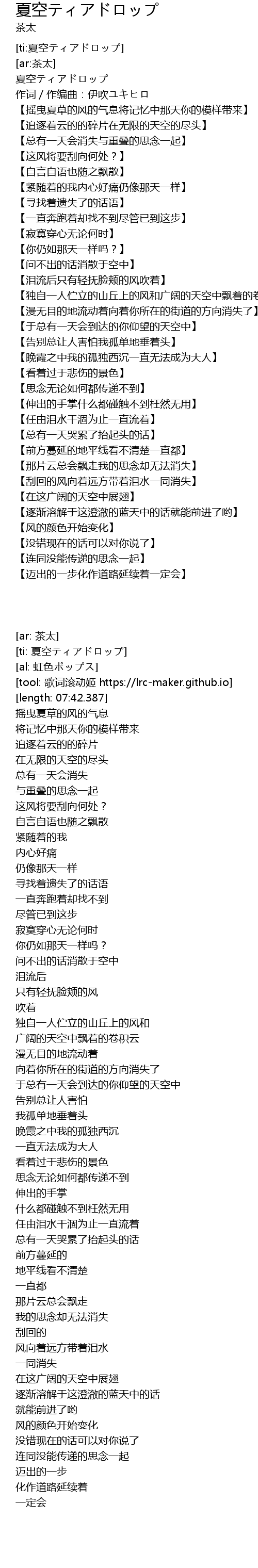 | [ti:夏空ティアドロップ] | |