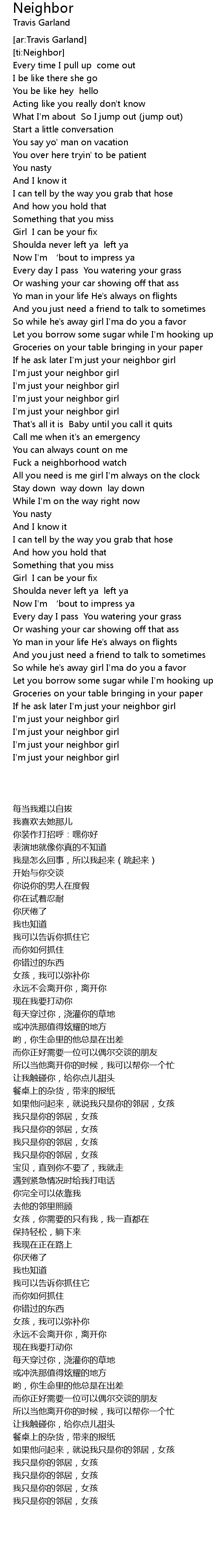 | [02:51.96] | If he ask later I'm just your neighbor girl |