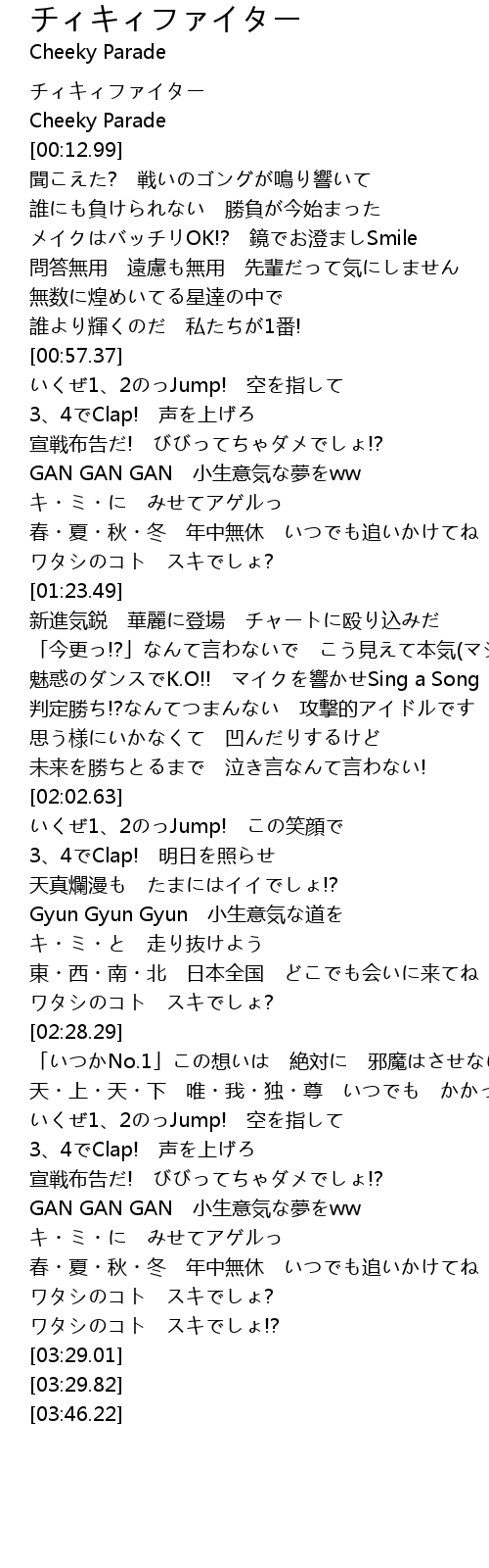 | [03:03.95] | 3、4でClap! 声を上げろ |
