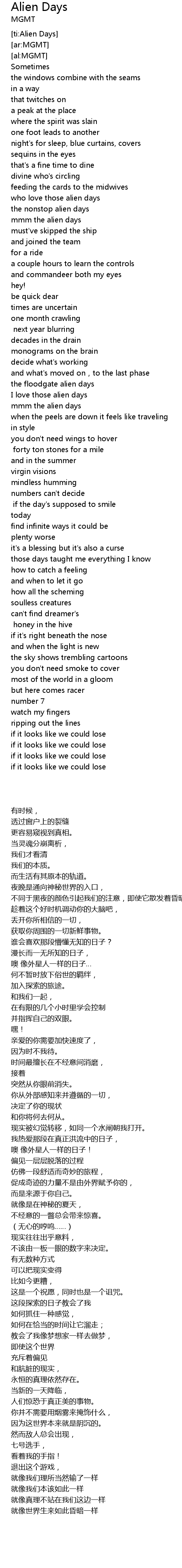 | [00:46.39] | who love those alien days |