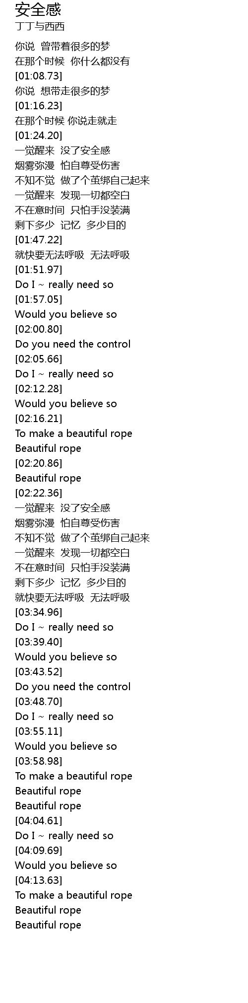 | [04:18.80] | Beautiful rope |
