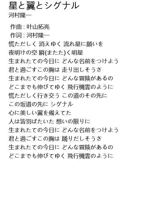 | [00:05.050] | 慌ただしく 消えゆく 流れ星に願いを |