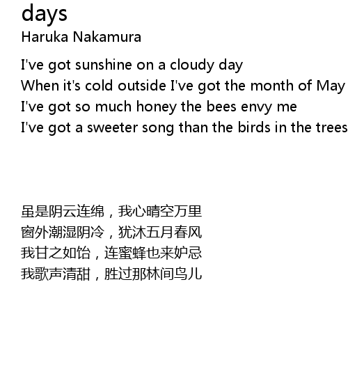 | [00:50.935] | I've got sunshine on a cloudy day |