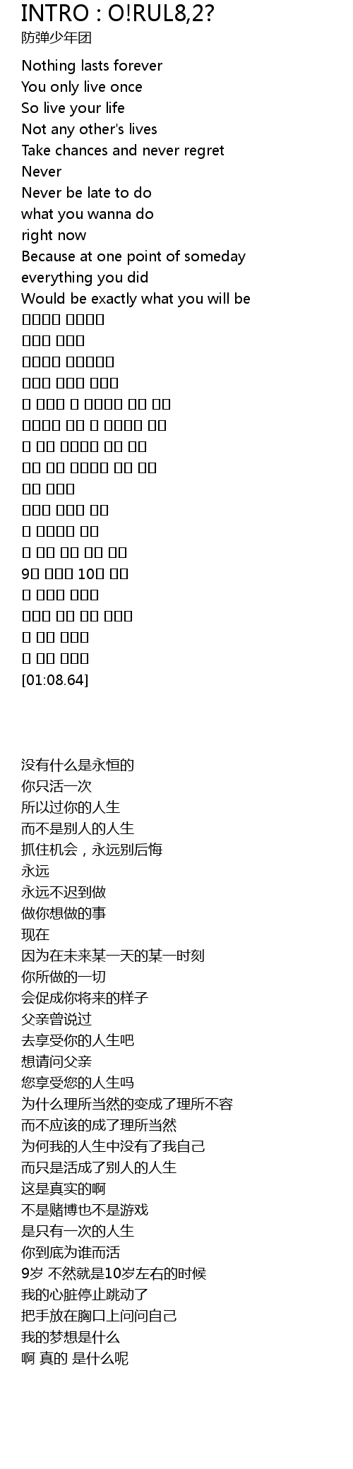 | [00:08.50] | So live your life |