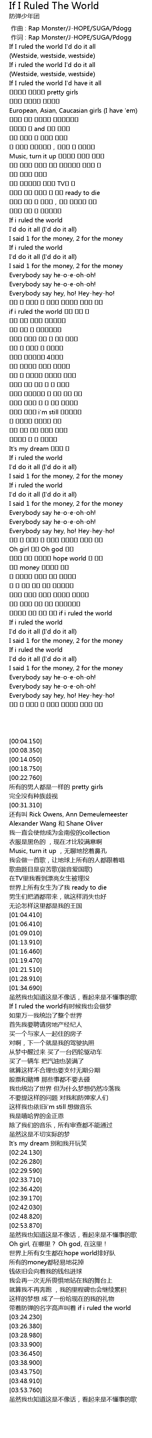 | [00:01.00] | zuo ci : Rap Monster JHOPE SUGA Pdogg |