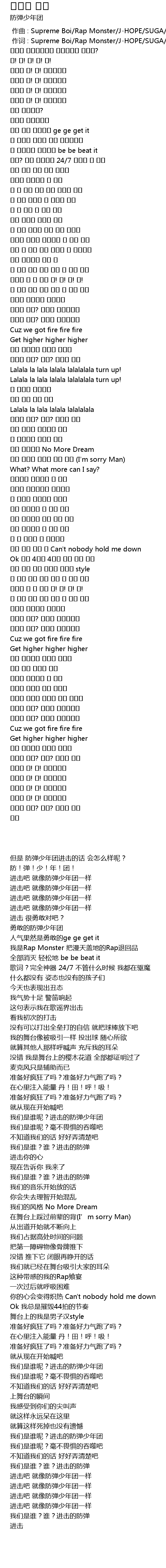 | [00:00.123] | zuo ci : Supreme Boi Rap Monster JHOPE SUGA Pdogg |