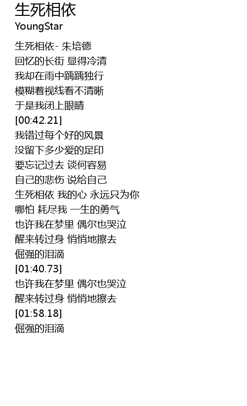 | [01:09.20] | 生死相依 我的心 永远只为你 |