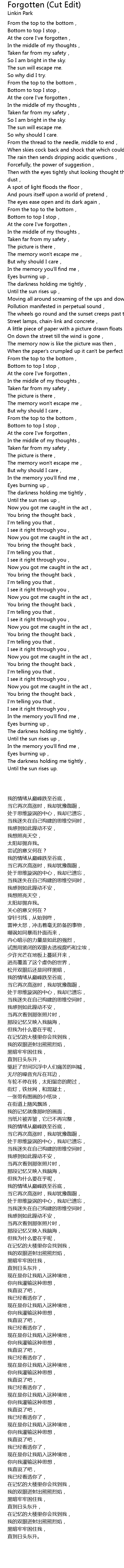 | Song | Forgotten (Cut Edit) |