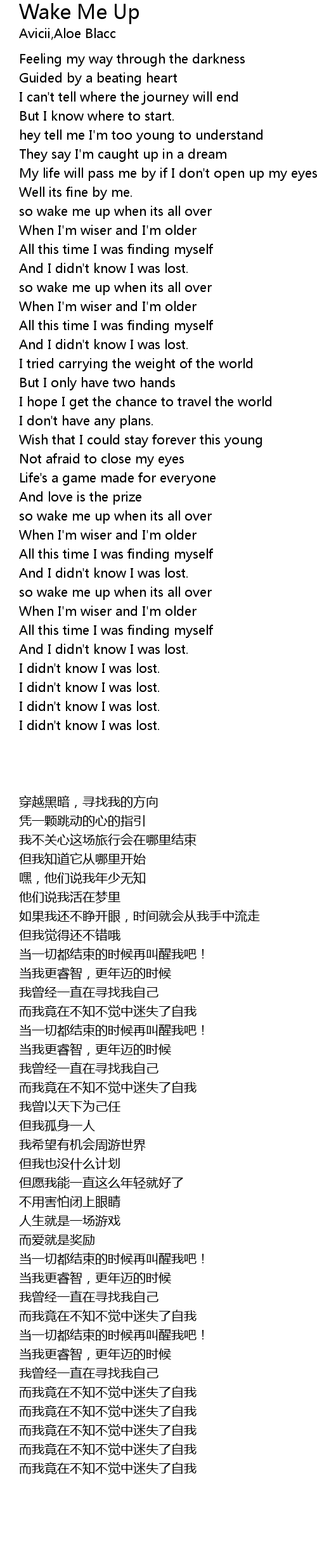 | [00:52.770] | so wake me up when its all over |