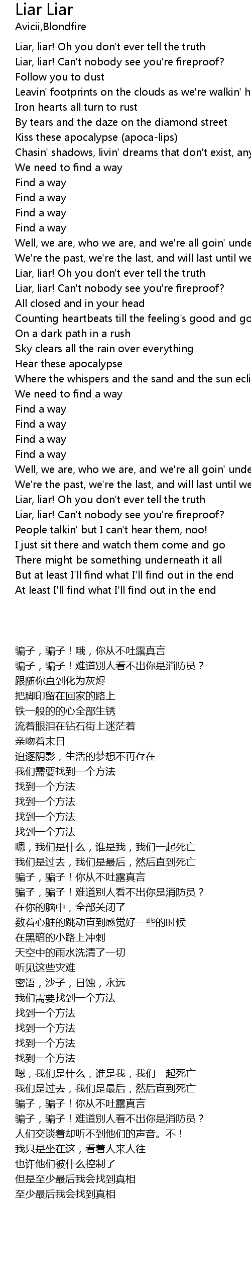 | [02:35.150] | Liar, liar! Oh you don't ever tell the truth |
