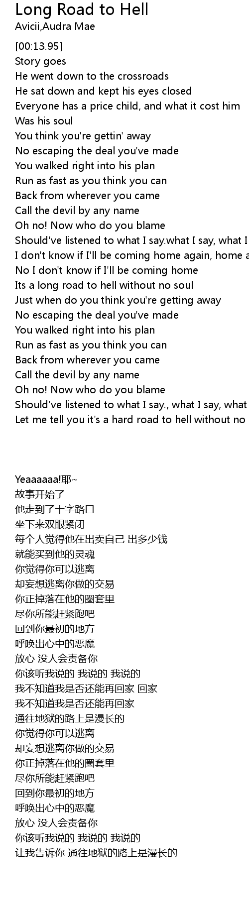 | [02:42.59] | Let me tell you it's a hard road to hell without no soul |