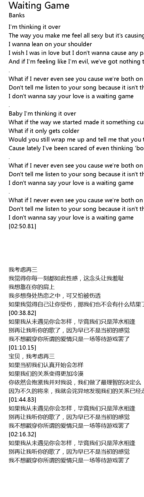| [02:41.07] | I don't wanna say your love is a waiting game |