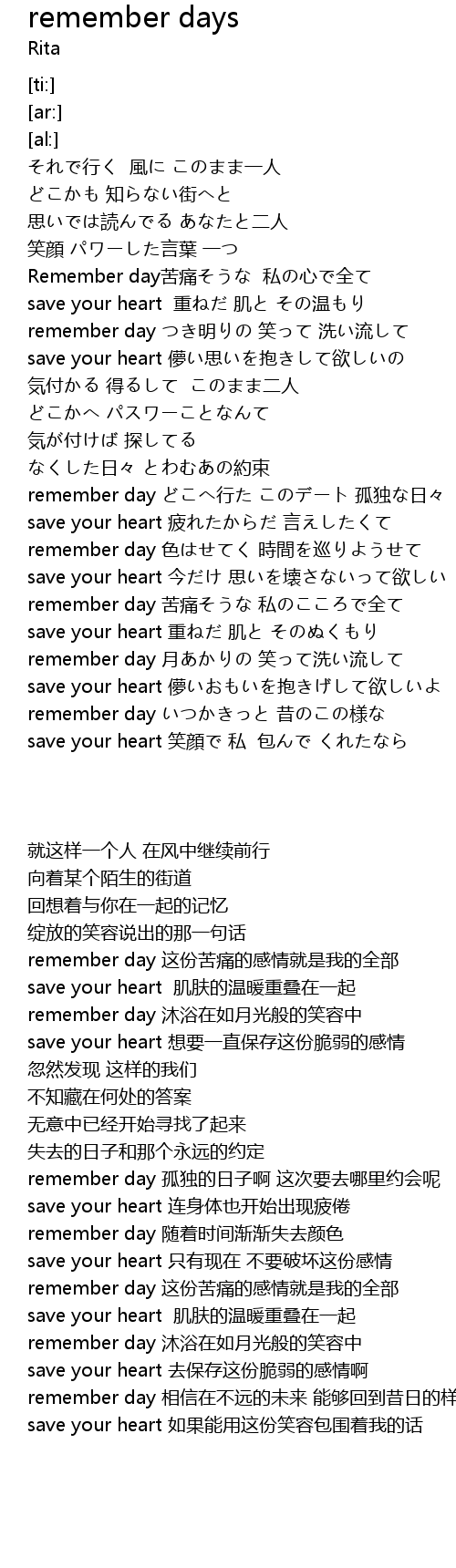 | [02:11.28] | remember day どこへ行た このデート 孤独な日々 |