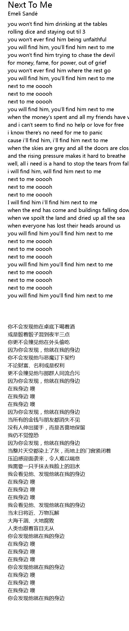 Next To Me Lyrics
