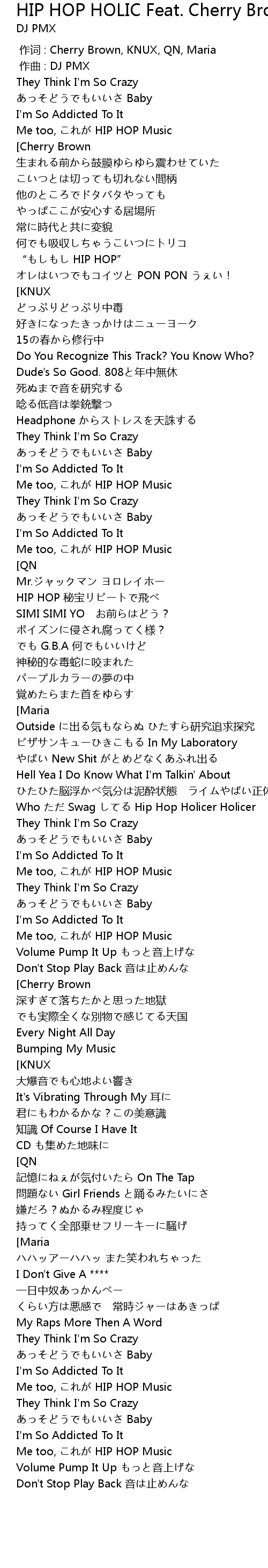 | Song | HIP HOP HOLIC Feat. Cherry Brown, KNUX, QN, Maria |