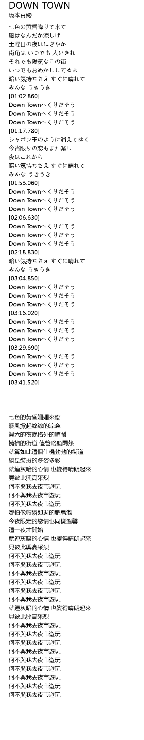 | [03:32.000] | Down Townへくりだそう |