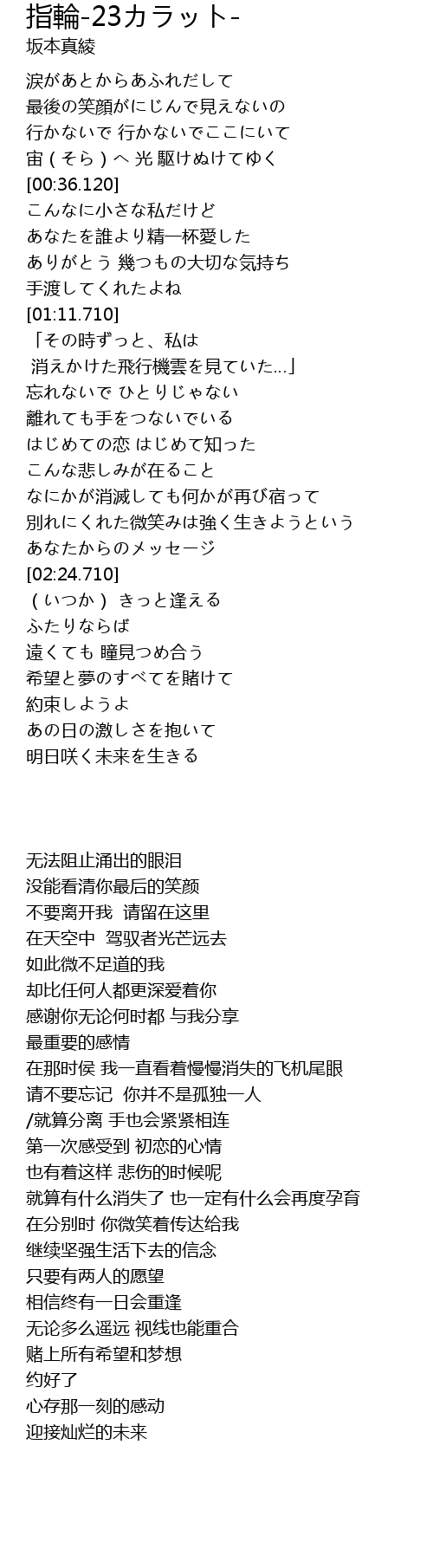 | [00:22.980] | 行かないで 行かないでここにいて |