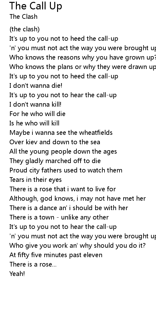 It's up to you not to heed the call-up |