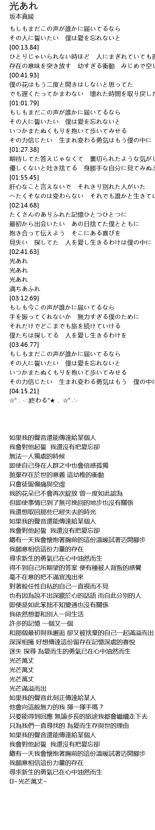 | [03:23.45] | もしも今この声が誰かに届いてるなら |