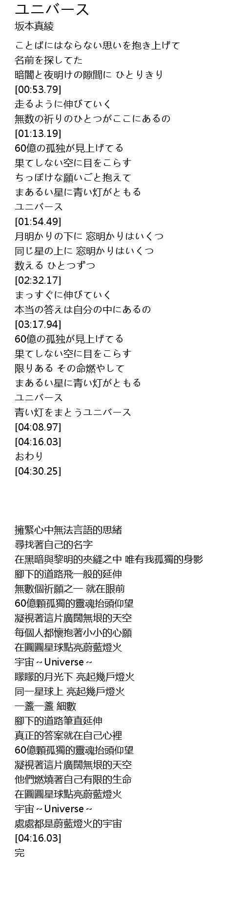 | [03:52.97] | ユニバース |