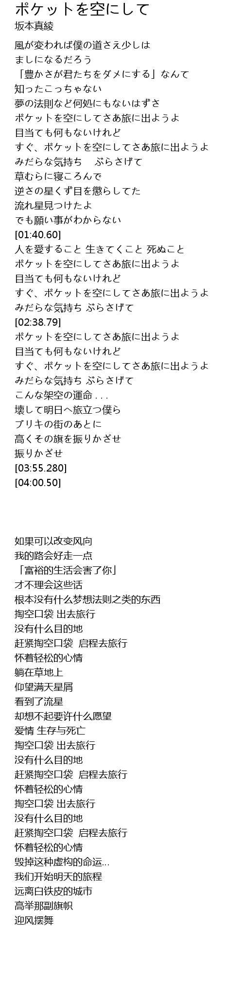 ポケットを空にしてさあ旅に出ようよ |