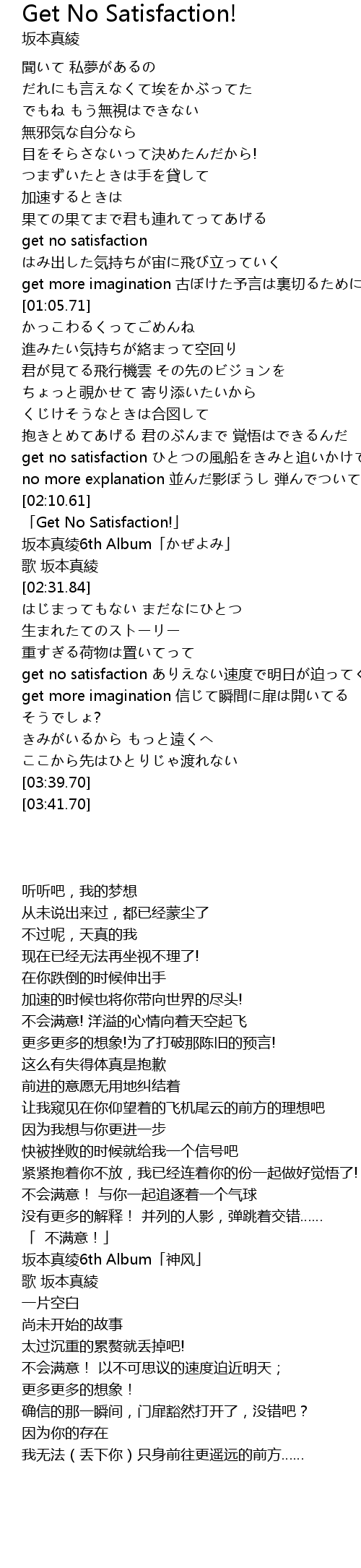 | [02:12.61] | 「Get No Satisfaction!」 |