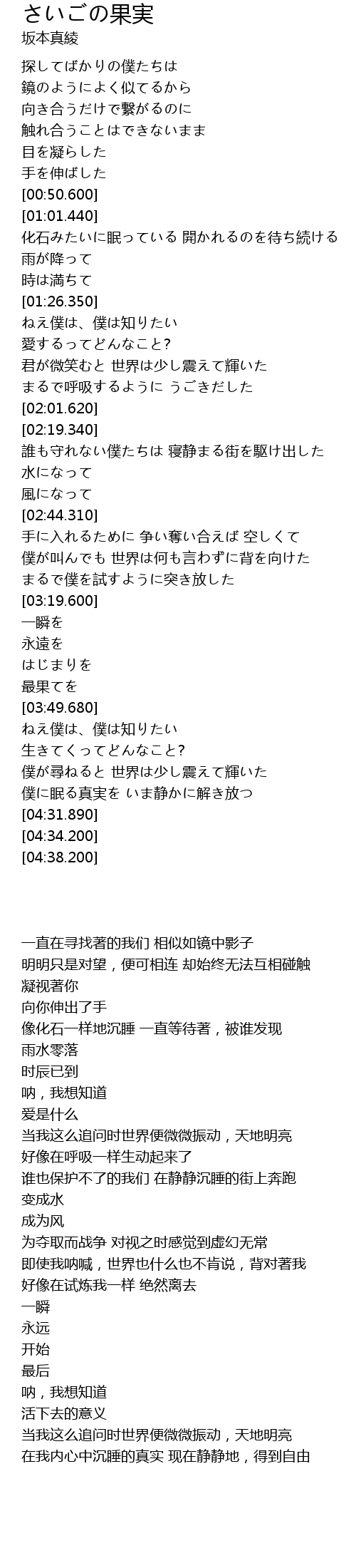 | [03:50.890] | ねえ僕は、僕は知りたい |