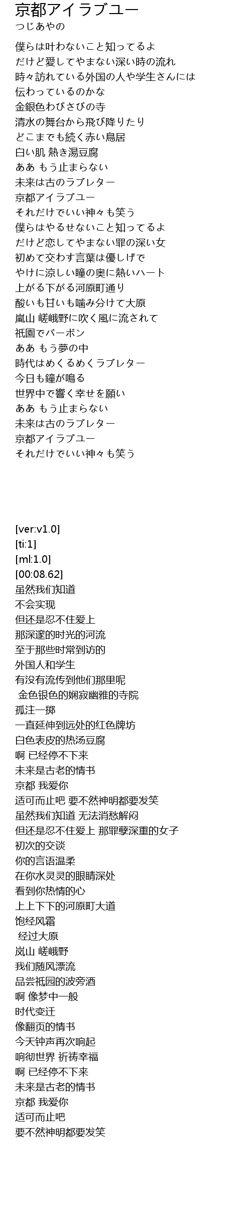 | Song | 京都アイラブユー |