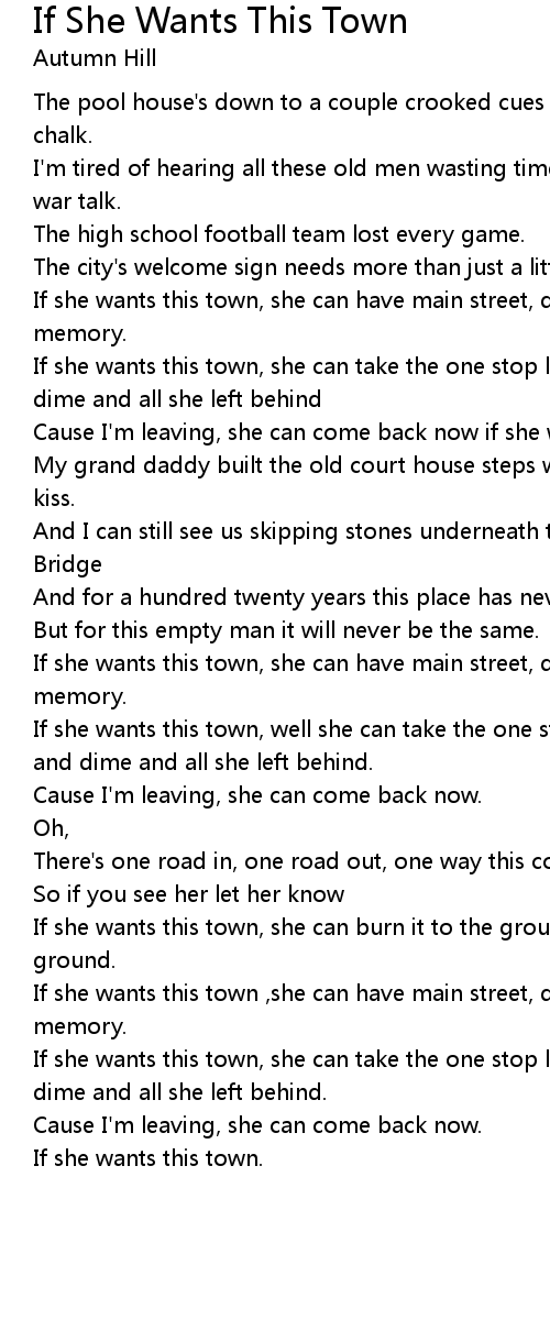 If she wants this town, she can take the one stop light, the five and dime and all she left behind |