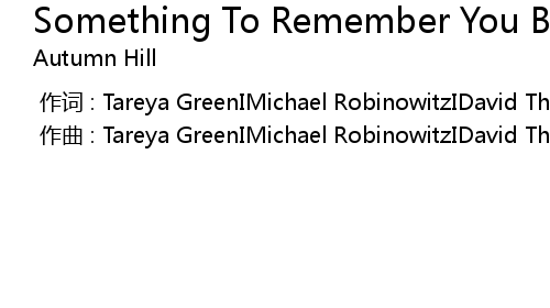 | [00:00.000] | 作曲 : Tareya GreenIMichael RobinowitzIDavid ThomsonIJake Mathews |