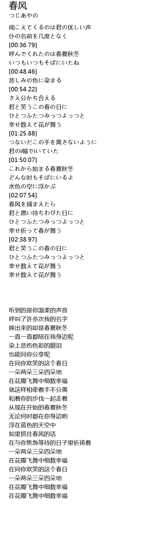 | [00:37.70] | 呼んでくれたのは春夏秋冬 |