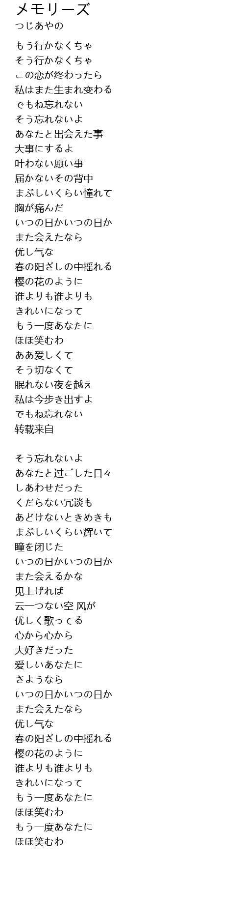 | Song | メモリーズ |