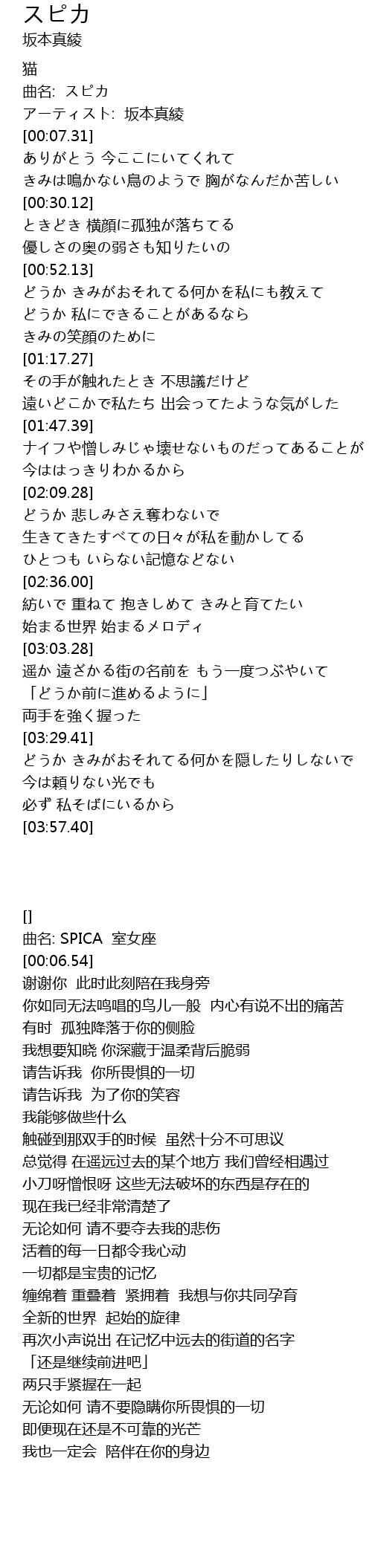 | [00:00.74] | 曲名: スピカ |