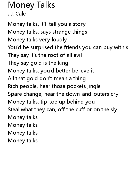 | Money talks, it'll tell you a story | |