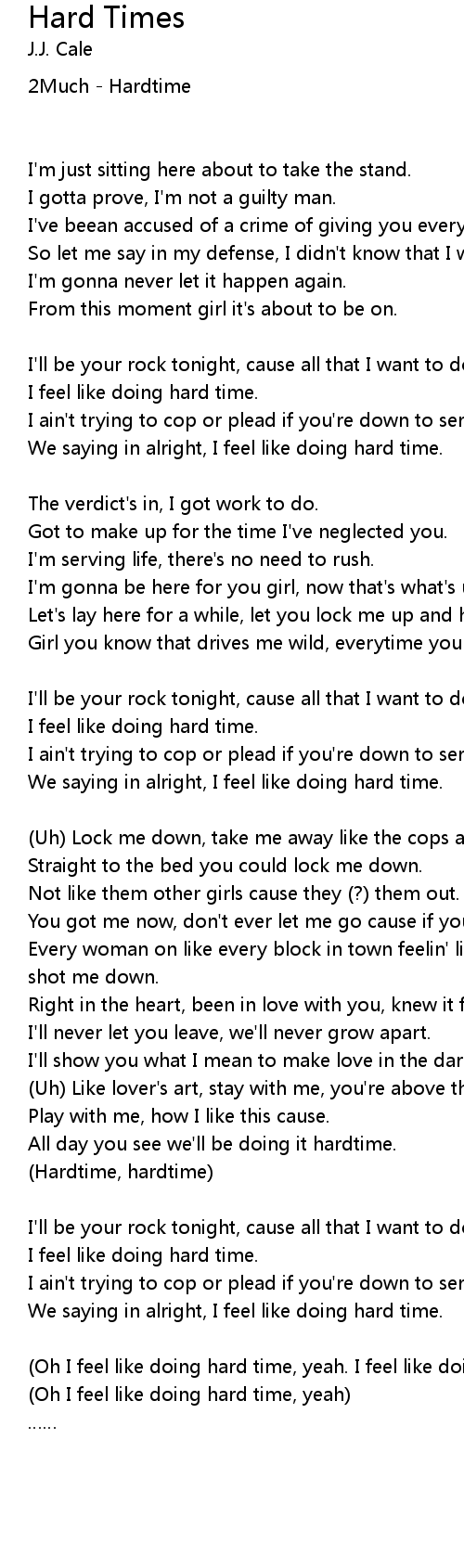 | (Oh I feel like doing hard time, yeah. I feel like doing hard time, yeah) | |