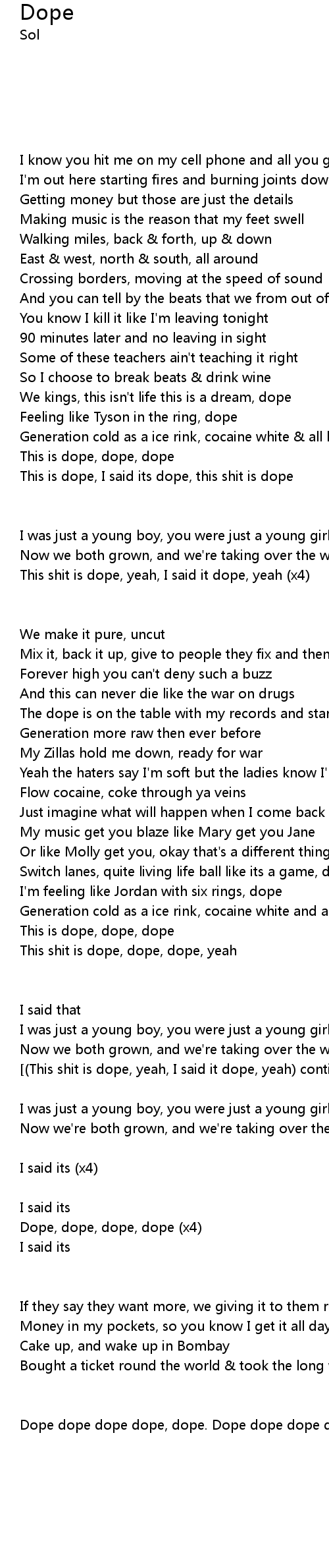 | [02:58.47] | Dope, dope, dope, dope x4 |