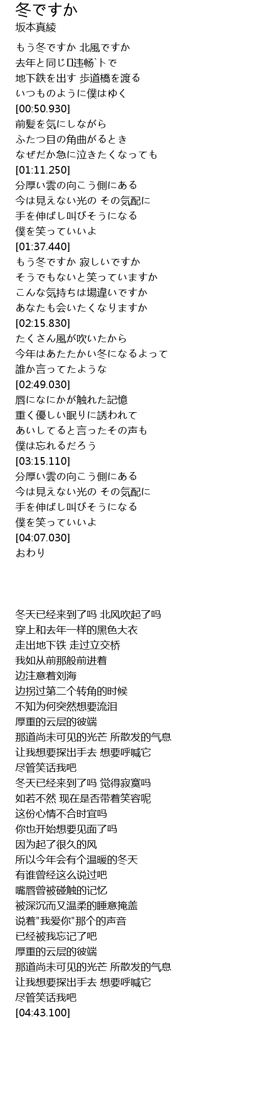 | [01:51.980] | もう冬ですか 寂しいですか |