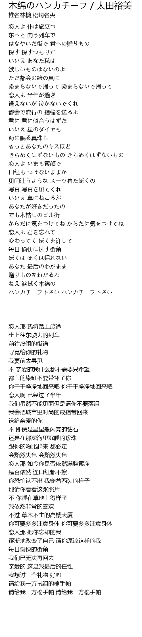 | [04:55.72] | ハンカチーフ下さい ハンカチーフ下さい |