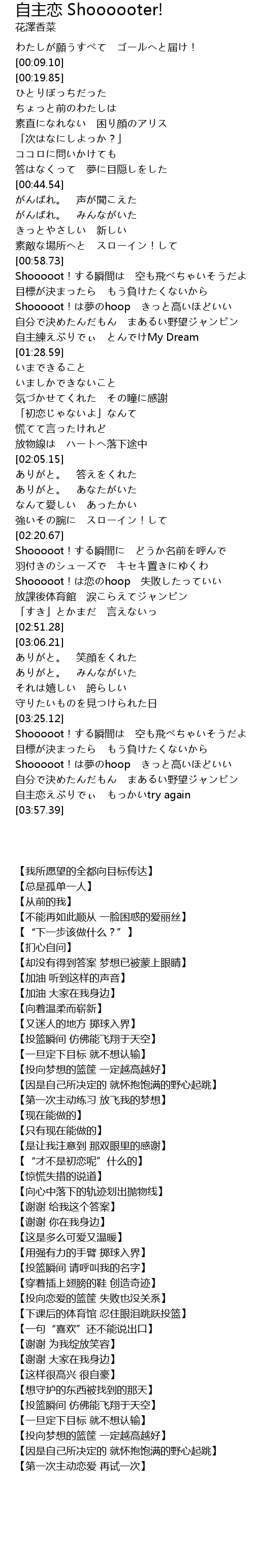 | [03:39.09] | Shooooot!は夢のhoop きっと高いほどいい |