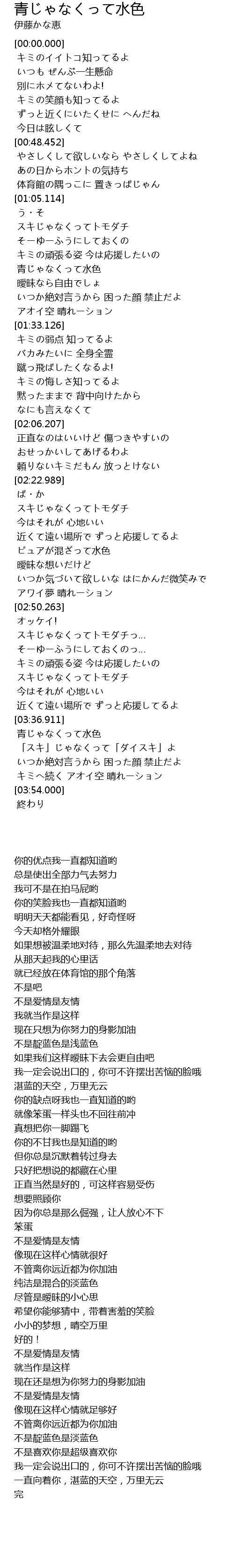 | [03:48.544] | キミへ続く アオイ空 晴れーション |
