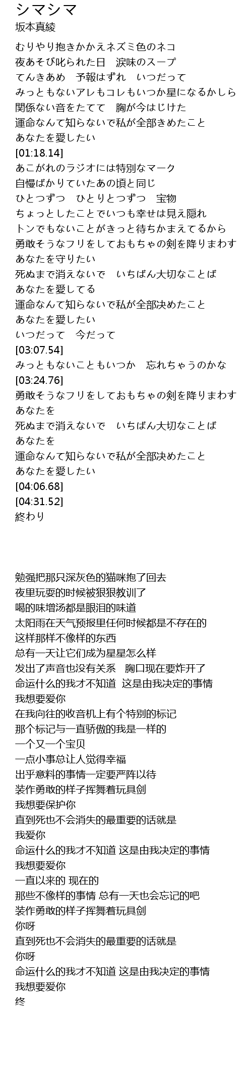 | [00:19.47] | むりやり抱きかかえネズミ色のネコ |