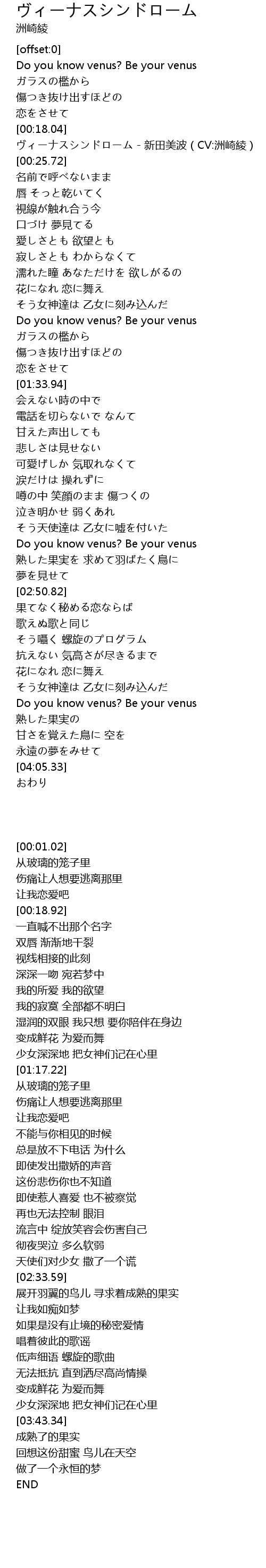| [00:01.02] | Do you know venus? Be your venus |