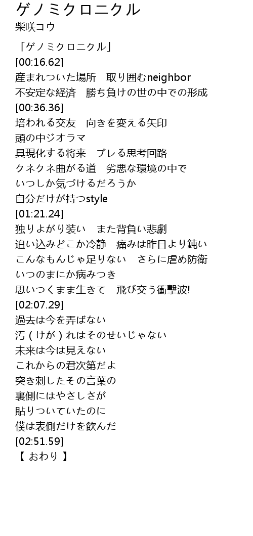 | [00:01.62] | 「ゲノミクロニクル」 |